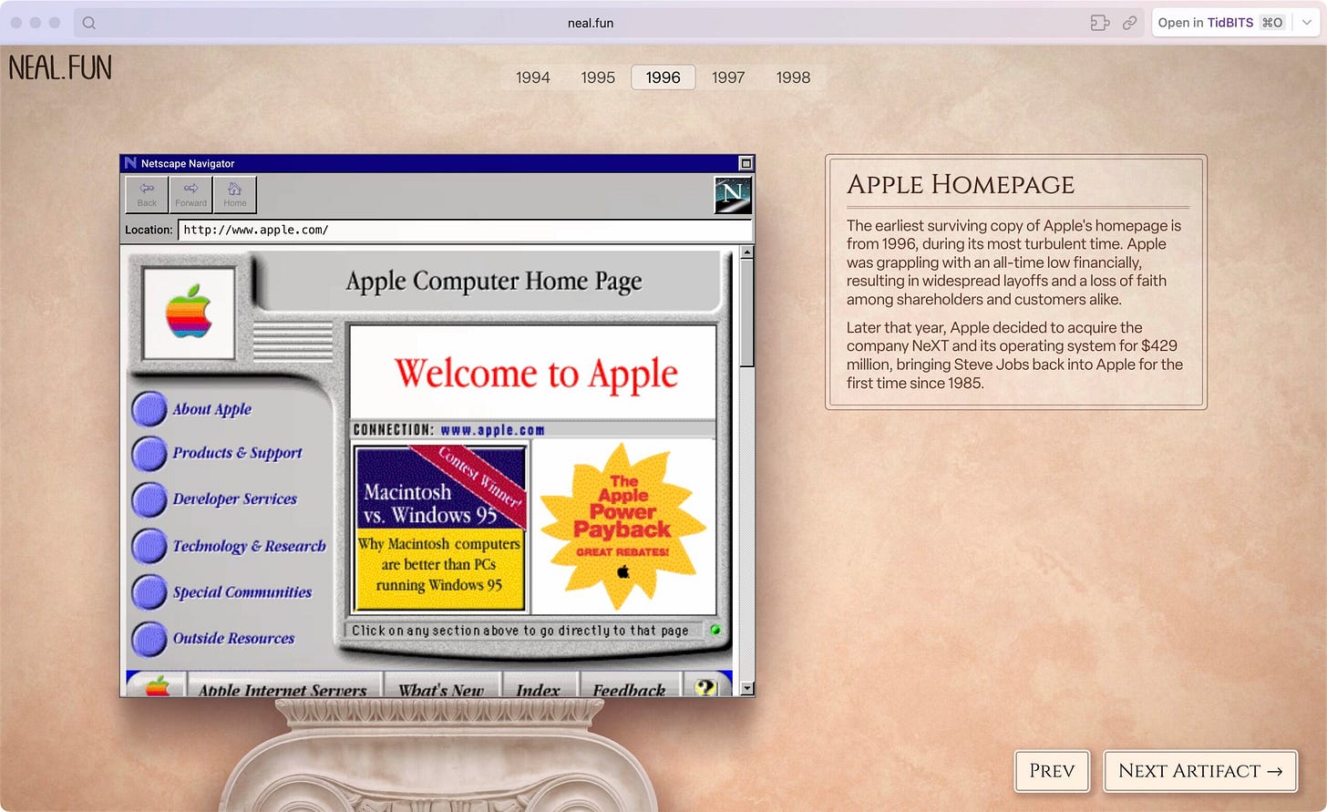 Neal Agarwal is back with a new entry for his collection of entertaining tiny websites. Internet Artifacts is a virtual museum of artifacts from early Internet history. Funny, educational and immensely nostalgic.